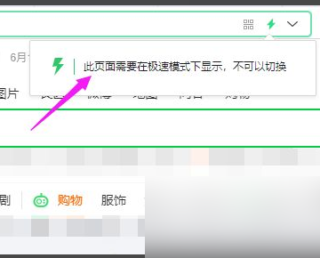 3、点击后会时候提示此页面需要再极速模式下显示,不可以切换,如下图所示。