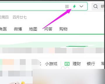2、然后在打开的主页面中,点击右上角360地址栏右边的“闪电”图标,如下图所示。
