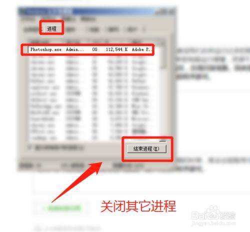 关闭其它运行的程序:当电脑资源不足的时候,或者说我们此刻运行过多的程序的时候。会导致电脑此时cpu、内存使用率过高,导致电脑运行缓慢,资源不足。这时候再打开ps的话,就会加速资源不足的情况,出现闪退现象。因此我们可以去任务管理器结束进程,关闭一些此时不用的程序即可。