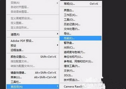3、打开PS—编辑—首选项—性能