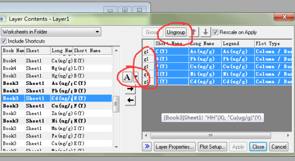 你好,这是因为你之前导入的数据g1无法没有解除组合,origin默认新导入的数据为g2,这就是图会重叠的原因,你说的问题差不多也是这个原因。