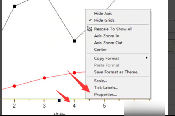 3、修改格式,首先修改坐标格式,选择坐标,右键属性。