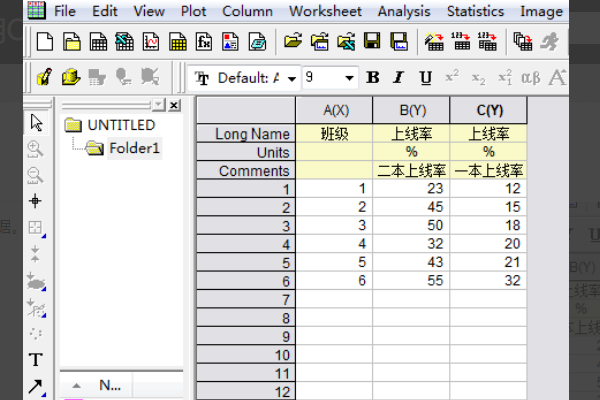 1、打开origin软件,输入数据,或者从excel里面把数据拷贝过来。