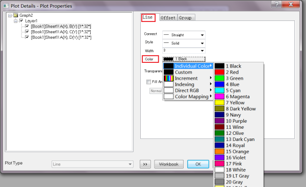 然后点击Color选项,修改各个图线的颜色,如图所示: