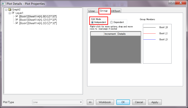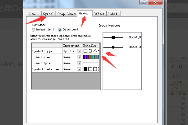 选择Group选项卡,在EditMode中选择Independent,使得各条线处于独立编辑的状态。