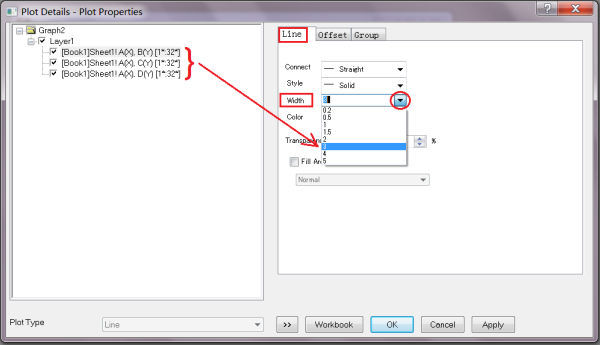 然后点击Width选项,修改图线的粗细程度,如图所示: