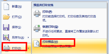 3、所有设置完成后,回到开始菜单,单击“打印”,选择“打印预览”