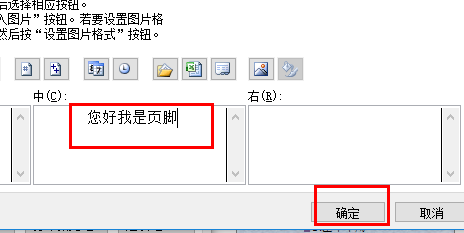 3)弹出页脚页面,在中部输入表尾设置,点击“确定”