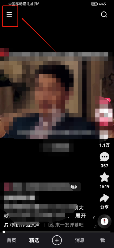 1、进入快手视频页面,点击左上角的三条横线图标,如下图所示;