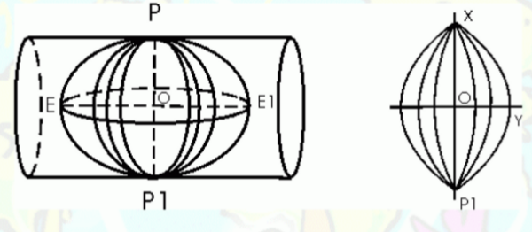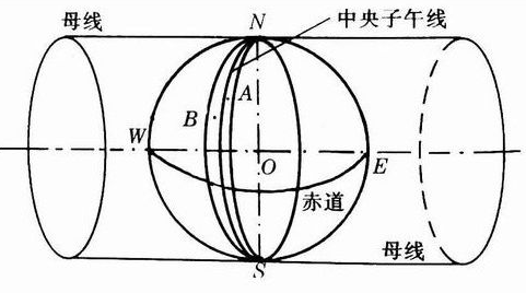 假想一个平面卷成一个横圆柱面并把它套在球体外面,使横轴圆柱的轴心通过球的中心,球面上一根子午线与横轴圆柱面相切。这样,该子午线在圆柱面上的投影为一直线,赤道面与圆柱面的交线是一条与该子午线投影垂直的直线。