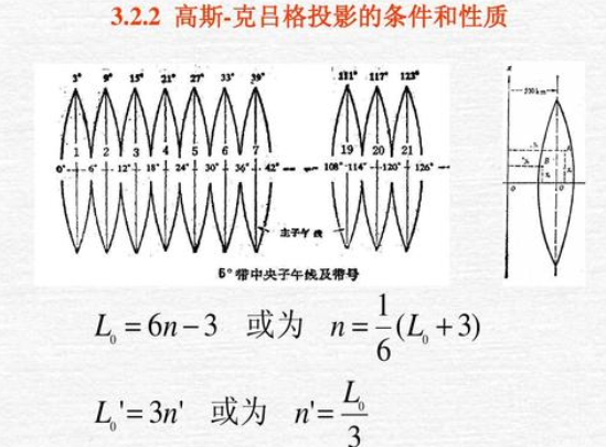 l高斯投影3度带:它的中央子午线一部分同6度带中央子午线重合,一部分同6度带的分界子午线重合,如用n表示3度带的带号,表示带中央子午线经度,它们的关系图所示。我国带共计22带(24~45带)。