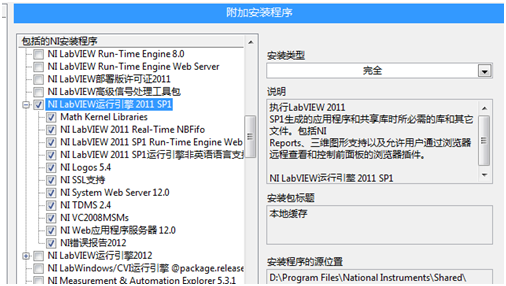 6.选择“附加安装程序”,勾选相应的LabVIEW运行引擎和必要的驱动程序以及工具包等,之后这些驱动以及工具包会一起包含在生成的installer中。LabVIEW在这里会自动帮您勾选一些必要的NI安装程序,但是有可能并没有包含所有需要安装的程序,您的程序中使用到了哪些驱动以及工具包,在这里配置的时候就需要勾选哪些工具包。对于一些特定的工具包,如NI OPCServers、DSC运行引擎等不支持直接打包部署(KB:5SS56RMQ 56P8BSJT),因此在这里会无法勾选或者勾选无效,这些工具包需要在目标电脑上再单独安装,如果您不能确定该工具包是否支持打包部署,请联系NI技术支持。