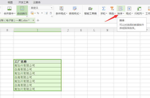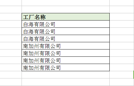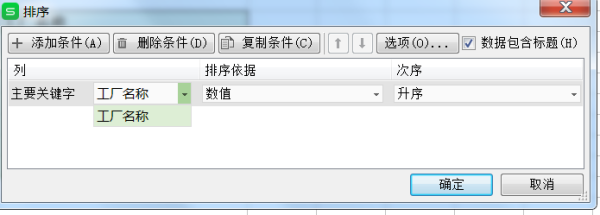 1、例如有两家不同名称的工厂,需要让相同名称排列在一起:
