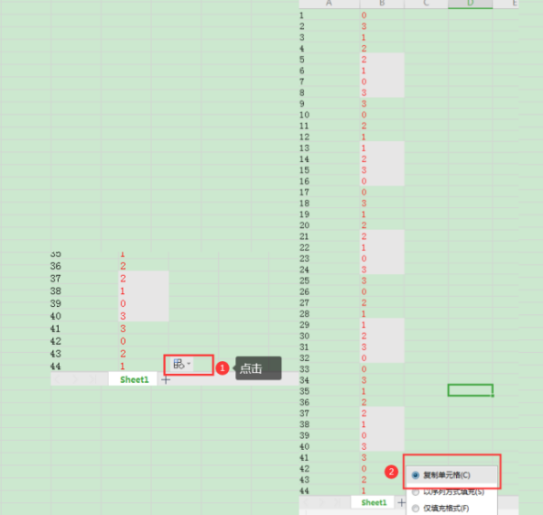 第三步:在最下面提示栏框中点击-选“复制单元格”就可以了;
