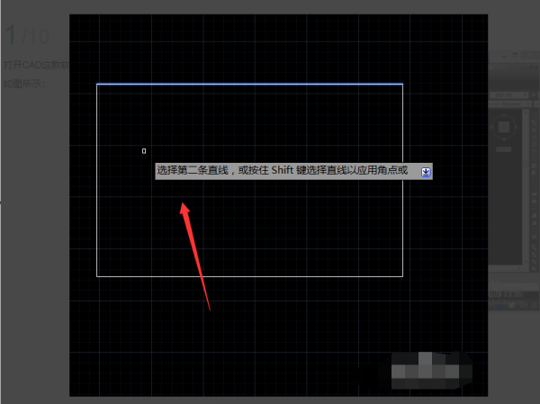 8、选择第一条倒角的直线之后,提示我们选择第二条倒角的直线