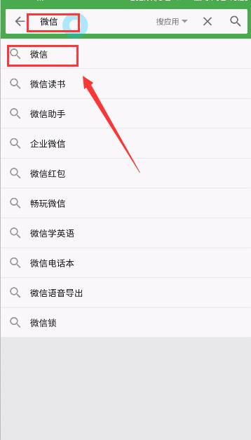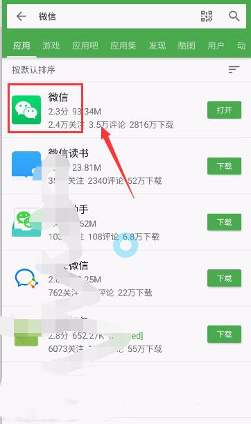 3丶进入搜索结果,然后点击箭头所示的微信图标。