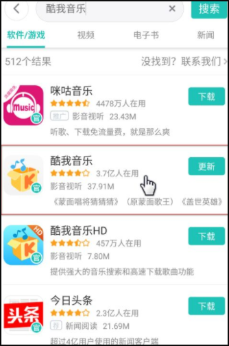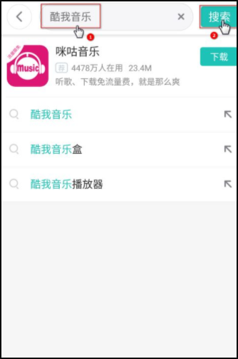 3、输入“酷我音乐”后,按“搜索”按钮。