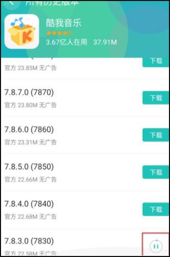 6丶在历史版本中,单击需要该版本的下载按钮,您可以在下载后自行安装。
