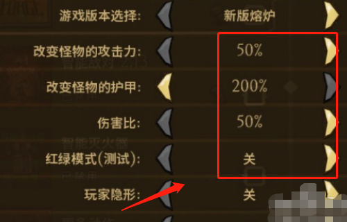 3、然后点击右下方的小螺丝进行调试mod,拉到最下边,如图的攻击力护甲 调整是最容易的难度,反之可以变难。