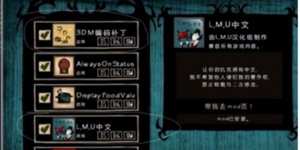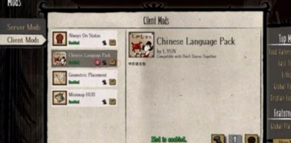 2、然后先选择好mod(只勾选这一个mod,包括自己客户端的mod也不能勾选)回到设置,选择模式,填写房间门和密码。