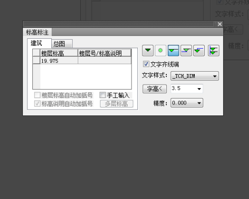 2、点击【标高标注】选项后系统会自动弹出【标高标注】对话框,如图所示。