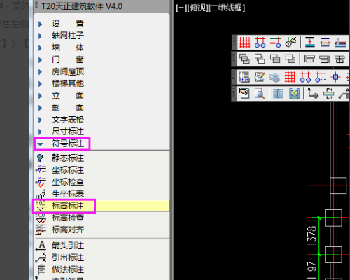 1、首先通过桌面快捷方式图标T20天正建筑V4.0启动AutoCAD 2014 - 简体中文 (Simplified Chinese)软件,接着在左侧天正建筑工具栏依次选中【符号标注】》【标高标注】选项,如图所示。