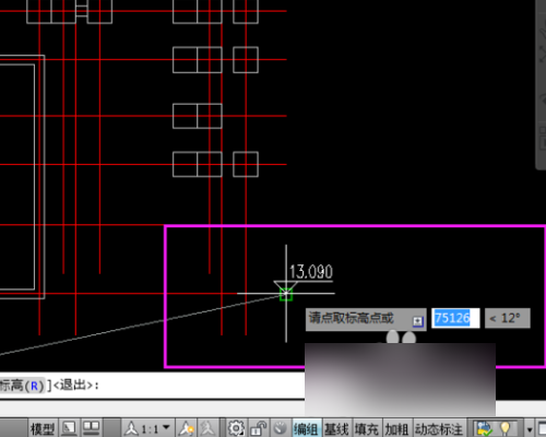5、接着根据信息提示,使用鼠标左键在绘图区域中点取标高方向,如图所示。