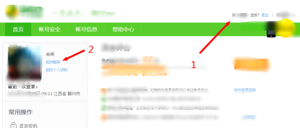 1. 登入360个人中心i.360.cn ,1为登入用户名,修改显示昵称点2修改昵称。