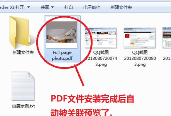 5、安装好后来到pdf所在的文件夹,这个时候可以发现,以PDF为后缀的文件被自动关联了。