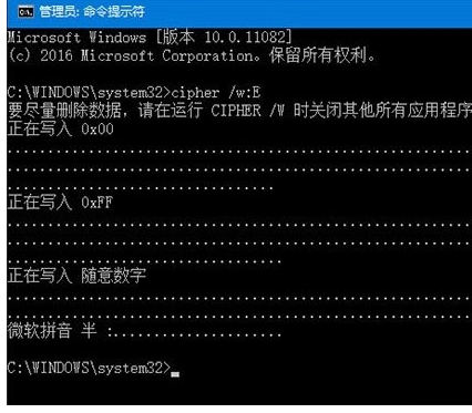 2、在打开的管理员命令提示符中输入cipher /w:C命令进行回车,