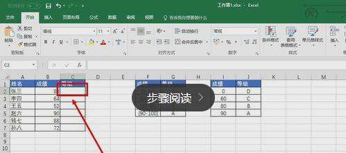 1、打开所需操作的数据表,如图,需要将各位同学的成绩按照右侧规则划分为ABCD四等。