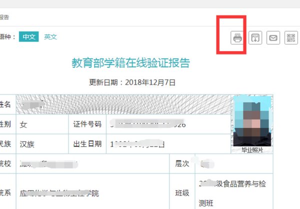 11、打开在线验证报告后,单击上方的“打印”按钮,打印即可