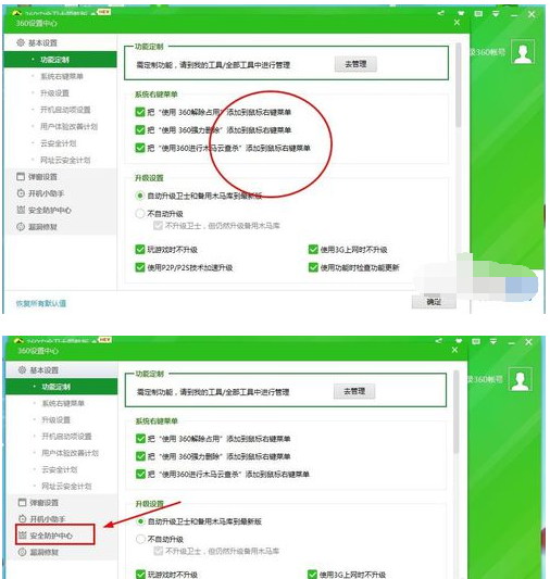 应该全部开启,步骤:1、首先打开360安全卫士,在功能大全中找到系统急救箱。2、点击系统急救箱首页的开始急救。 3、完成急救后,点击下方的立即重启。 4、重启后右键点击任务栏的360安全卫士图标,开启安全防护中心即可。360卫士 开启智能防护
