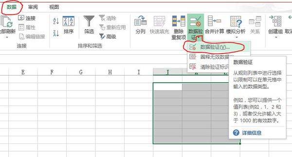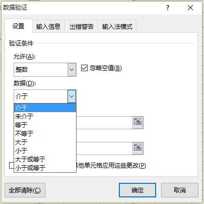 2.点击数据验证右下角的小倒三角,出现数据验证...,点击进去,弹出下图数据验证窗口。
