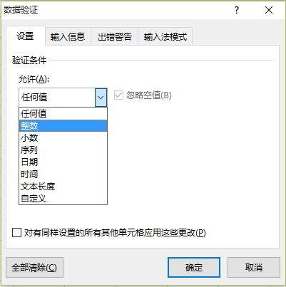 3.选择允许的类型,如下图,我们以整数为例。