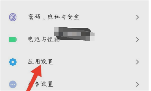2、进入设置界面,点击应用设置进入。