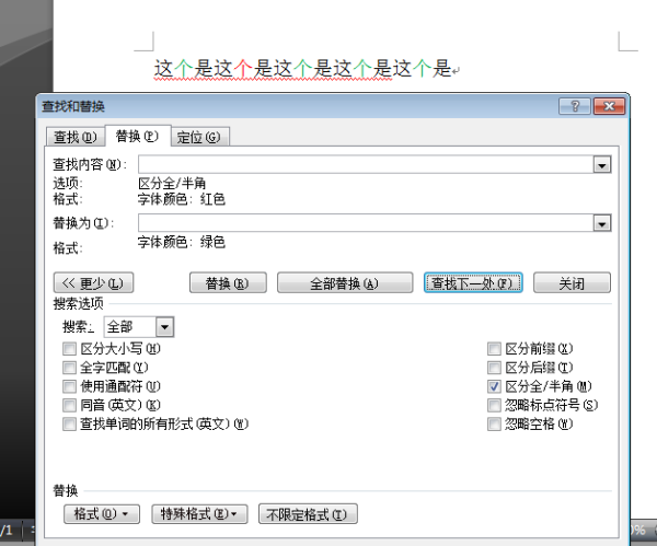 5、例:下面的图片“个”都是红的,修改成绿的。