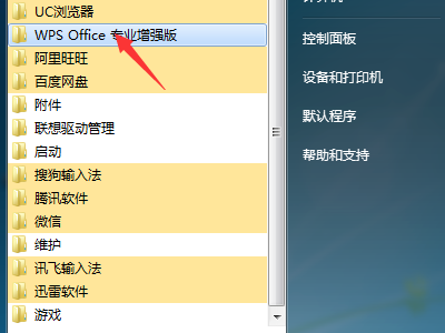 1、首先点击电脑中的开始菜单按钮,选择所有程序。在弹出的菜单中选择WPS Office 专业增强版。