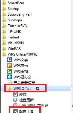 在程序->WPS的目录下,找到配置工具;