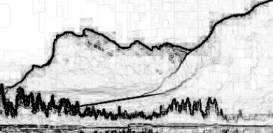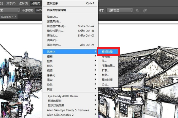 2、执行 "筛选器样式查找边缘" 并提取山水画的边缘。