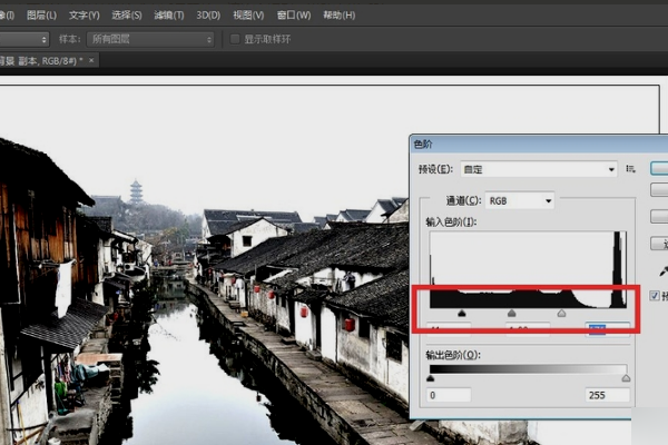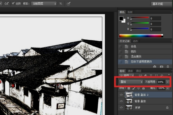 可以应用PS中的滤镜功能做出水墨画效果,具体步骤如下: 1、打开原图素材,把背景图层复制一层。首先让“色阶”改变画面的基调,按Ctrl + L 调出色阶面板,将设置“白场”的吸管点击水面的中灰部分,这样,原本灰蒙蒙的画面就提亮了许多;再将设置“黑场”的吸管点击瓦面暗部深灰的部分,于是反差大了,画面随之明快了起来。接下来,大幅度的减去了色饱和,这之前我抠下了码头洗衣的人群,为的是保留这部分的色彩,可以使画面活跃一些。 2、复制出一个图层,选菜单“滤镜”-“风格化”-“查找边缘”,得到一个线描的图层,再选菜单“图像”-“调整”-“去色”,用“色阶”加大图层的对比,设置图层混合模式为“叠加”,“不透ps怎么照片做水墨效果