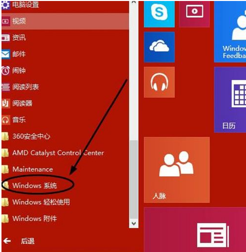 1、打开win10系统桌面左下角的“开始”菜单,单击“所有程序”,单击其中的“windows系统”。如下图。