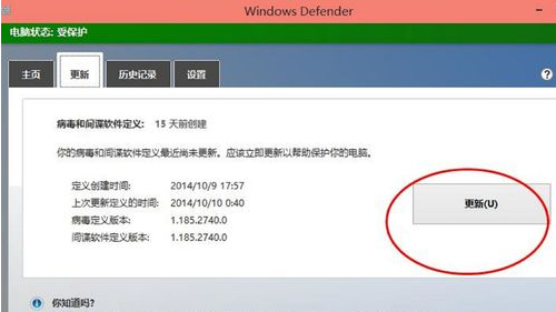 5、windows defender还支持更新操作,点击“更新”菜单,单击“更新”。