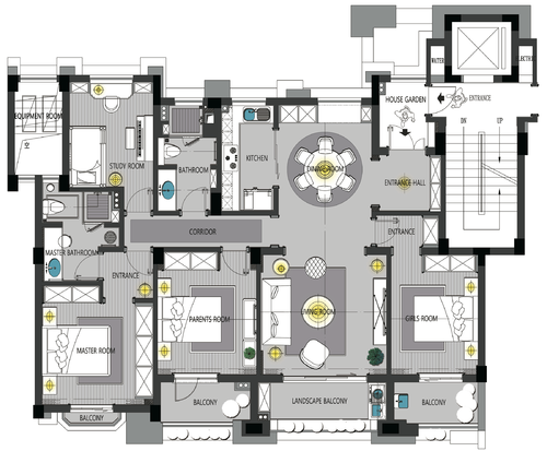 平面布置图里包括原始户型图、原始面积图、平面布局图、地面布置图、顶面布置图、水路布置图、开关布置图、平面布局图的详细尺寸和方位图等。
