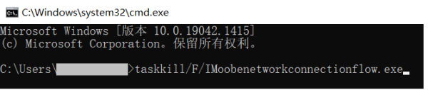 2. 在出现的命令提示符页面中输入 taskkill/F/IMoobenetworkconnectionflow.exe 将网络连接进程关闭。关闭命令提示符页面后即可进入创建本地账户页面。