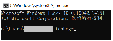 3. 或者,在出现的命令提示符页面中输入 taskmgr 回车,打开任务管理器。