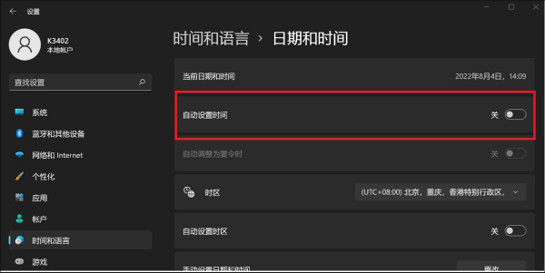 Windows11/10系统日期和时间默认是开启“自动设置时间”的,即自动同步网络时间。