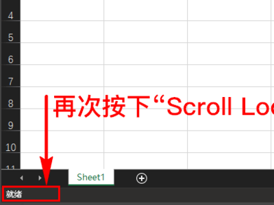 4、可以发现软件左下角的“滚动”字样已经消失了,表明已经退出滚动模式了,此时再通过上下左右方向键移动光标时,即可选择单元格了。