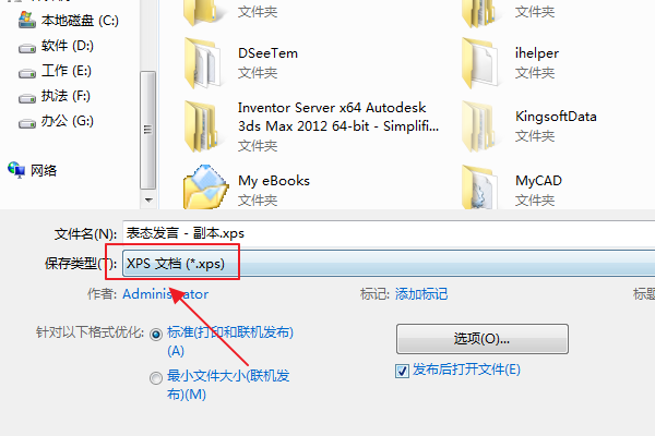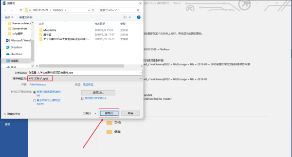3丶将保存类型改成XPS文档,点击保存。