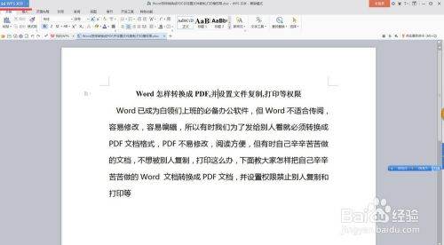 1、首先,打开需要转换成PDF格式的Word文档。(示例文档如图所示)